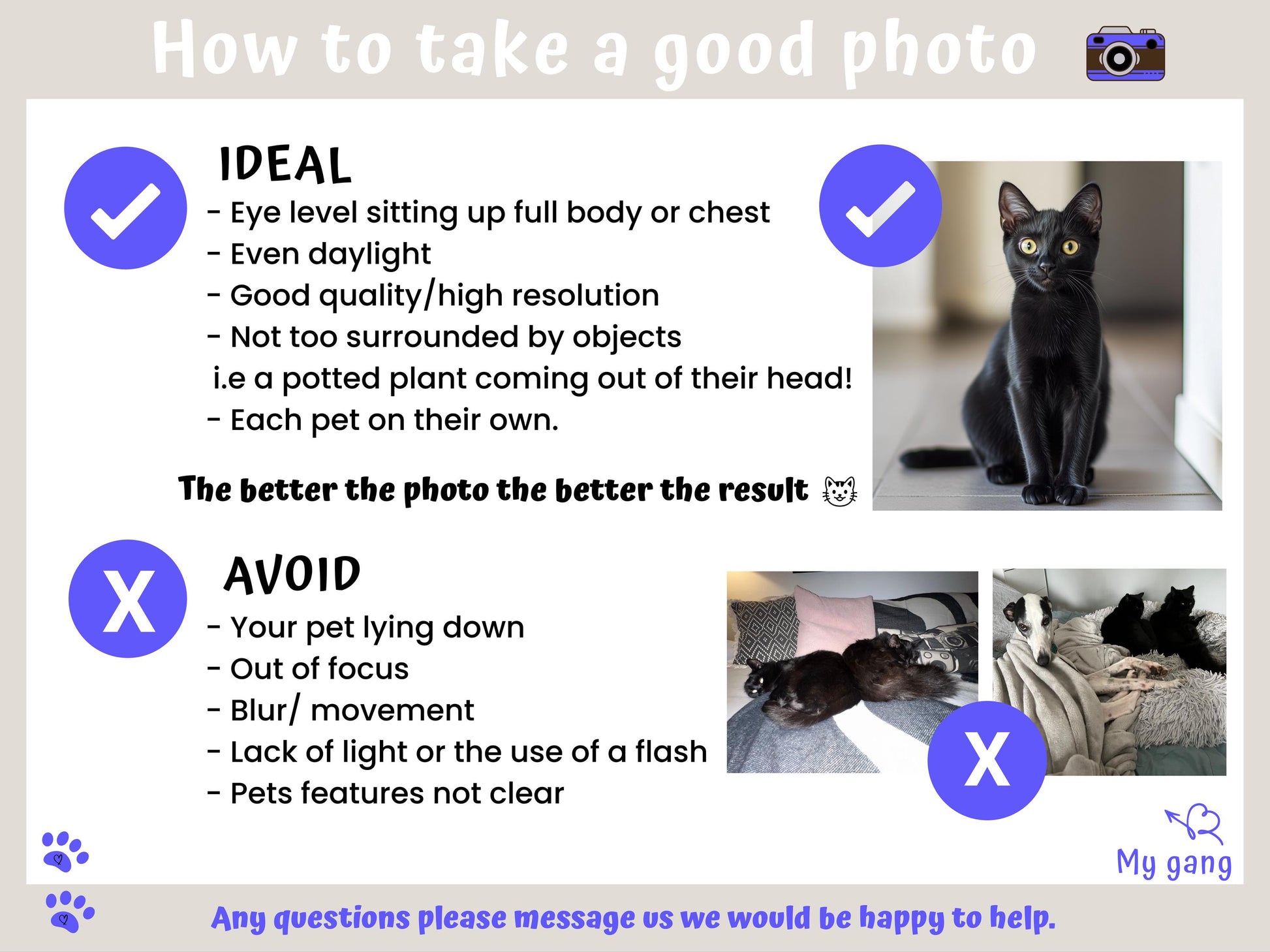 2. Upload a clear quality photo of your pet via ETSY message or to hello@petsprintsgifts.com with your Etsy order number.